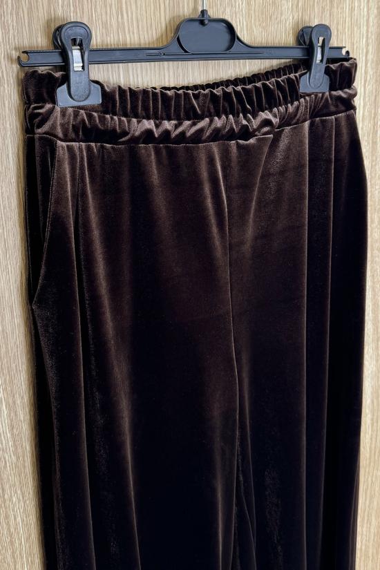 Harem trousers made from velvet-like fabric. Mid-rise with two side pockets. Rubberised hem and elasticated waistband, making them suitable for various sizes.