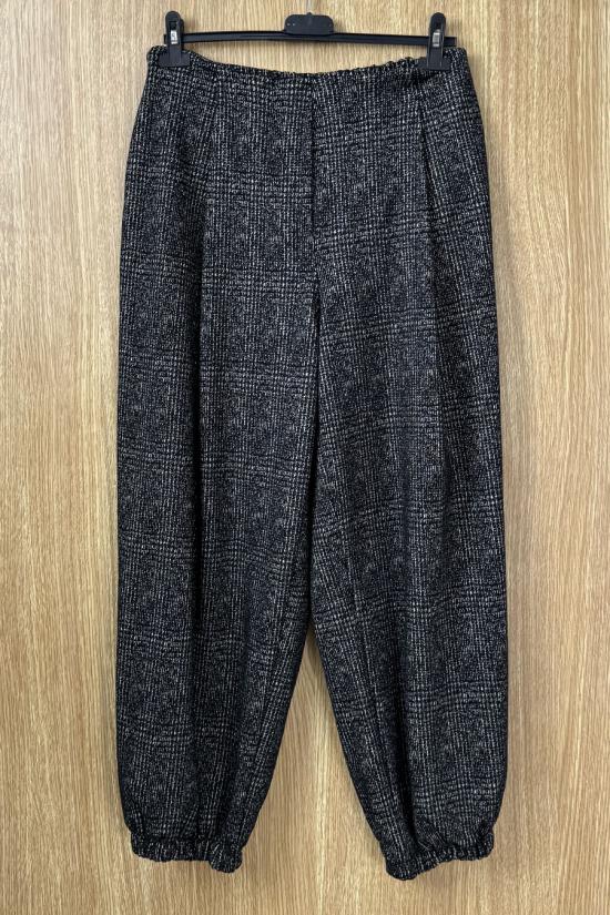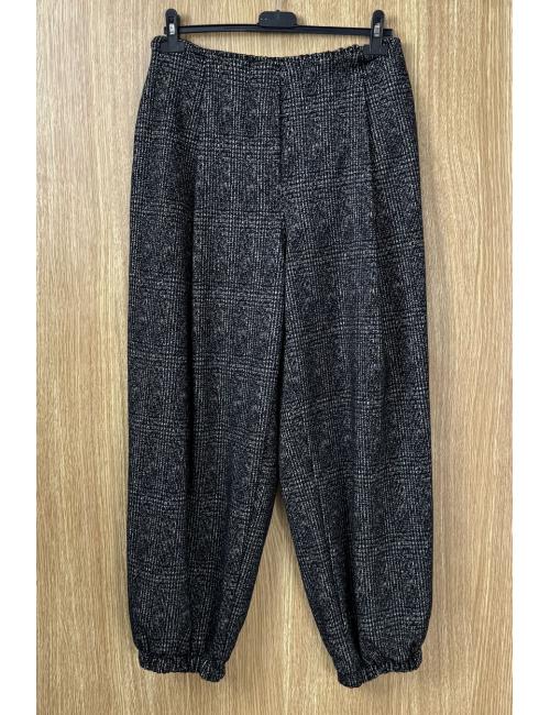 Bloomers with pleats, made from marbled checked corduroy fabric. Two side pockets, elasticated waist and hem, making them adaptable to various sizes.