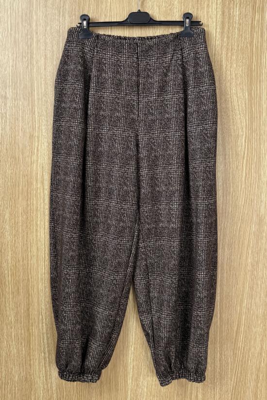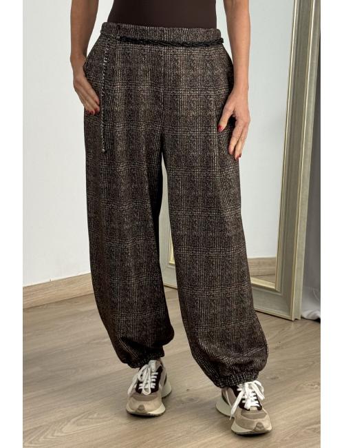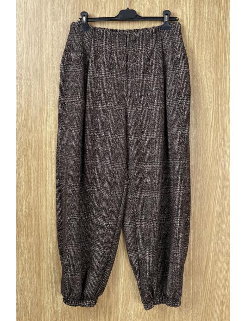 Bloomers with pleats, made from marbled checked corduroy fabric. Two side pockets, elasticated waist and hem, making them adaptable to various sizes.