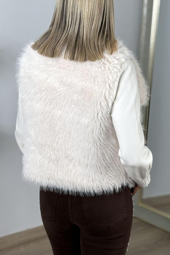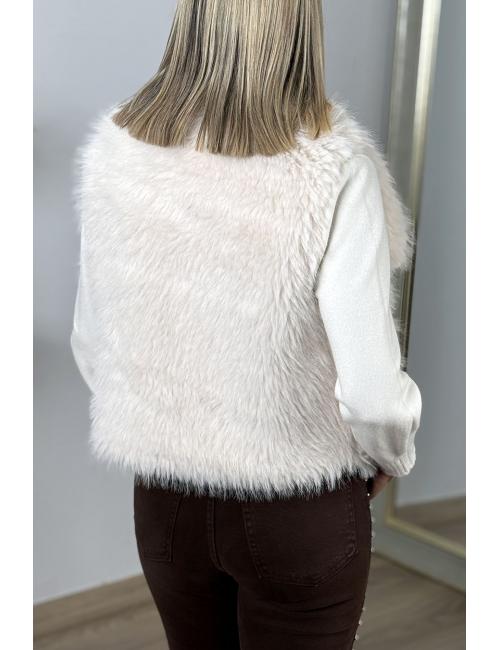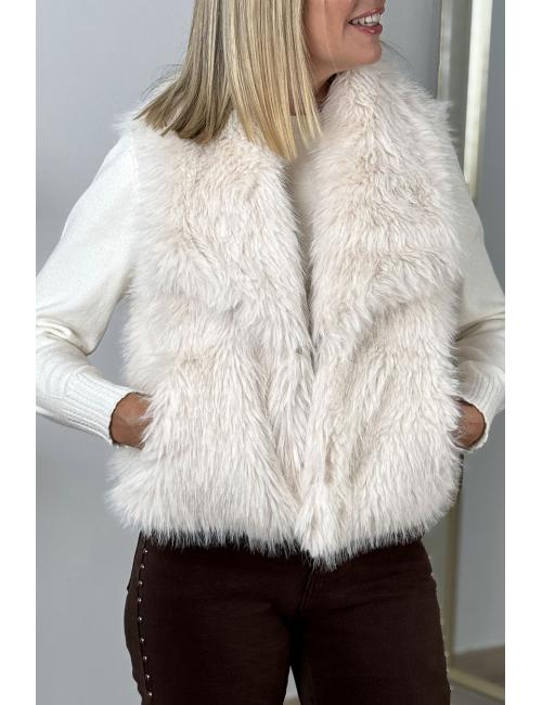 Short waistcoat made from extra-soft faux fur. Tailored lapel and invisible fastening with two mini press studs. The perfect waistcoat to layer over jumpers, shirts or dresses and add a sophisticated touch to your look while staying comfortable.