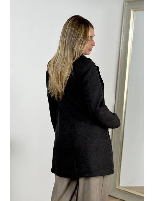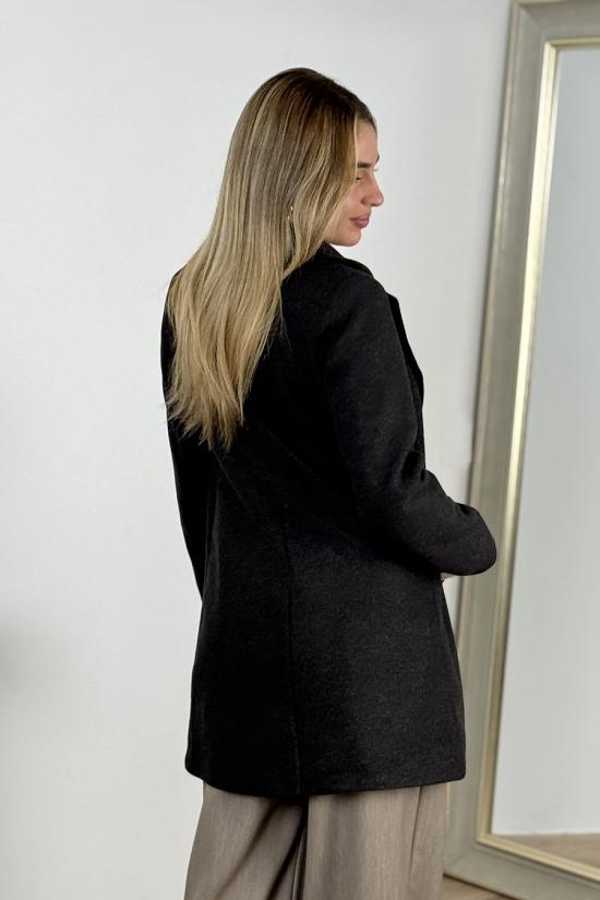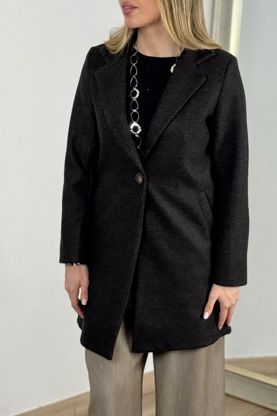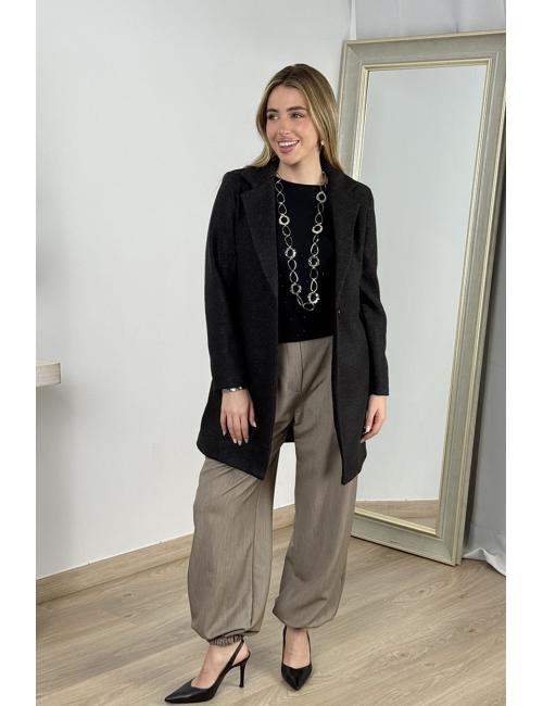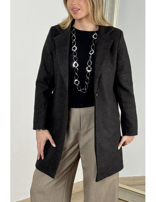 Abrigo midi confeccionado en paño suave de doble capa. Cuello pico con solapa y cierre mediante un botón. Dos bolsillos laterales y forro interior.