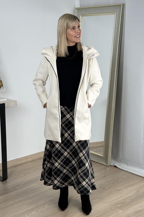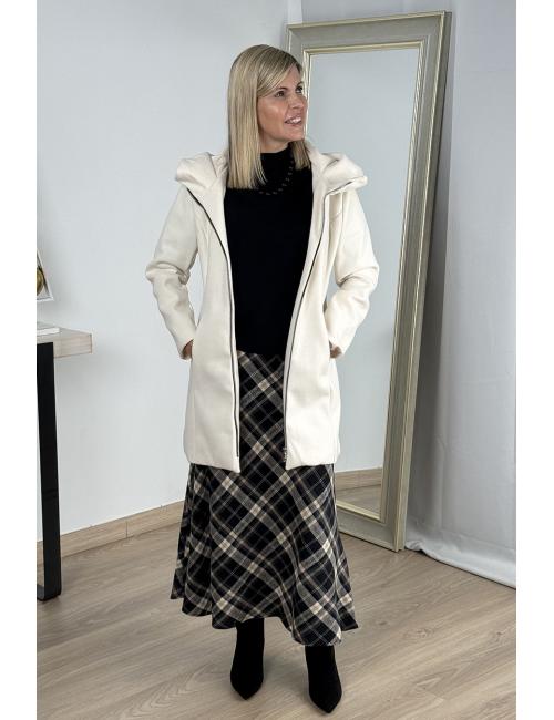 Abrigo midi confeccionado en paño suave. Detalle de capucha y cierre con cremallera. Dos bolsillos laterales. Una prenda de abrigo estilosa, calentita y confortable.