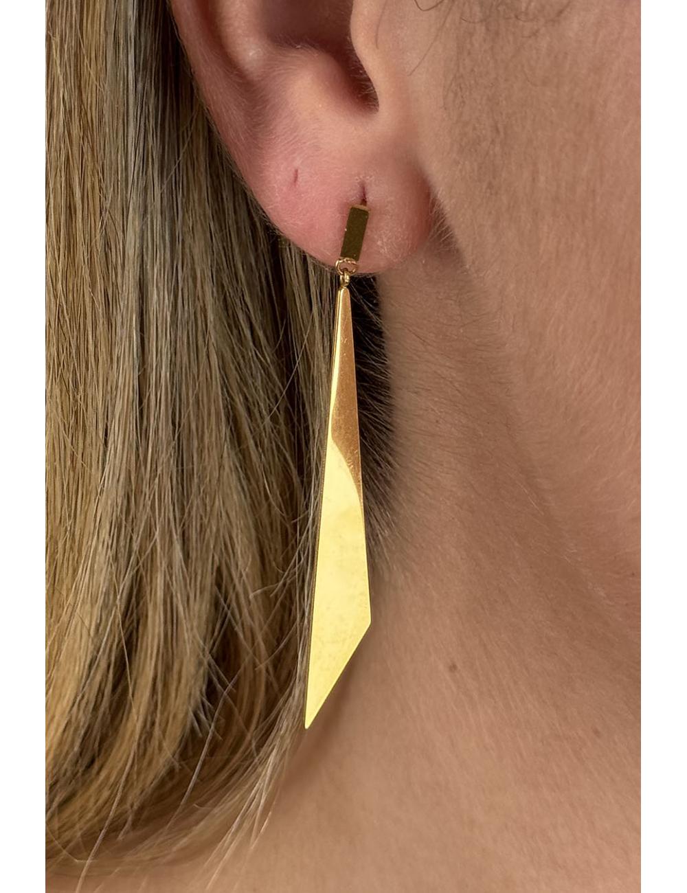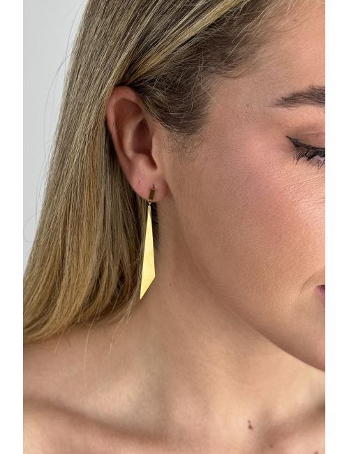 Pendientes largos tipo lágrima en forma de triángulo irregular de acero inxodable.