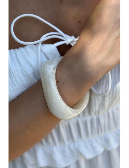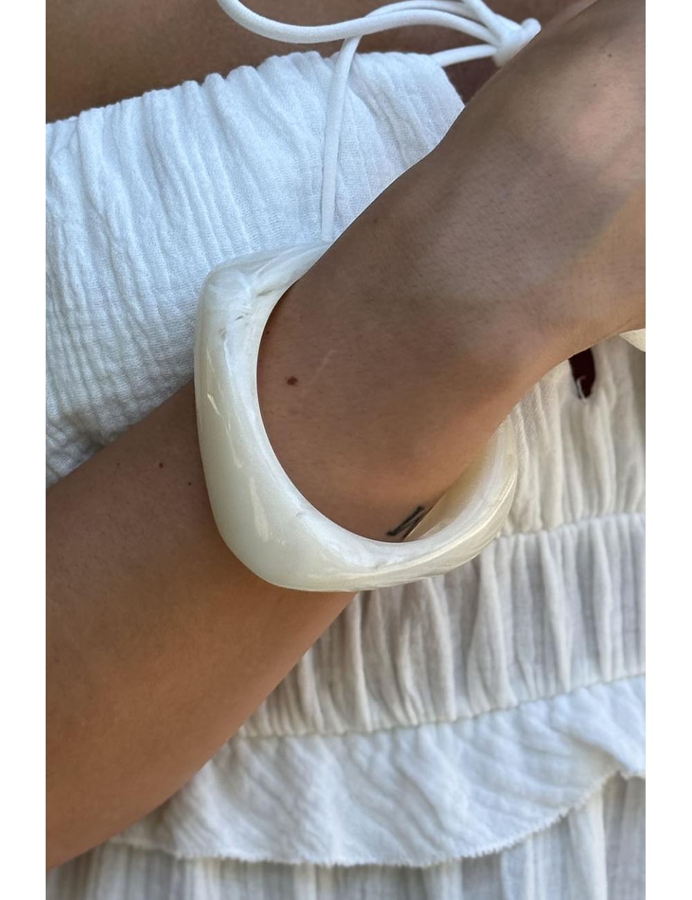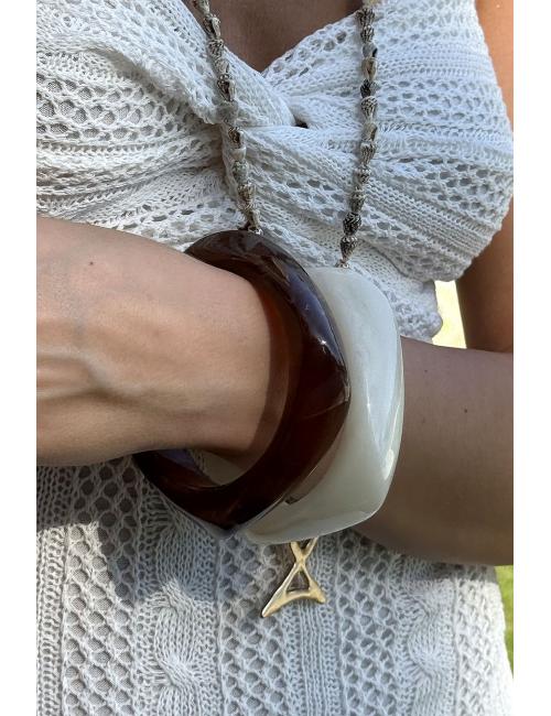 Pulsera ancha de resina translúcida y formas asimétricas.