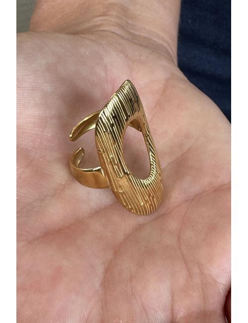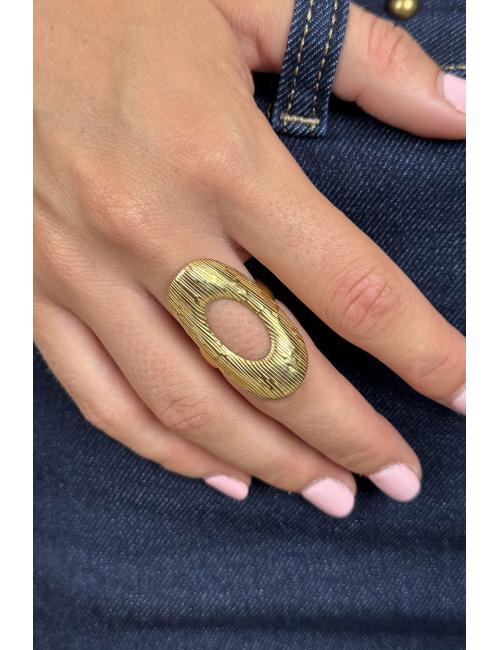 Anillo ovalado texturado con calado central que deja ver la piel.
