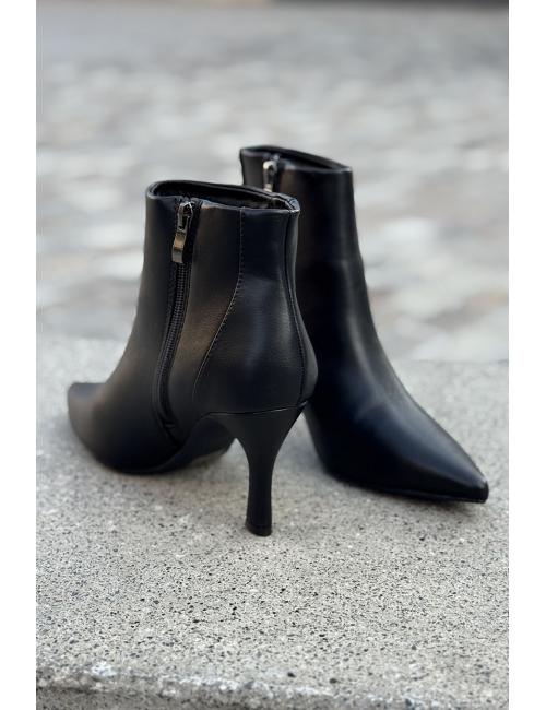 Botines confeccionados en piel sintética. Punta afilada y tacón estilo kitten. Cierre con cremallera en lateral interior. Dale un toque sofisticado a tu look con un clásico actualizado, elegante y versátil.