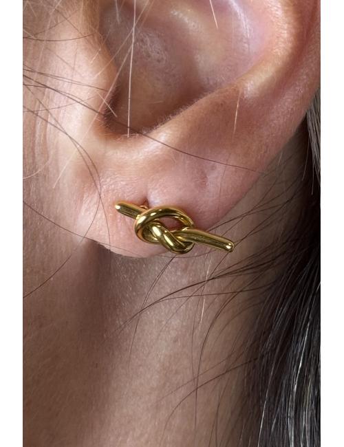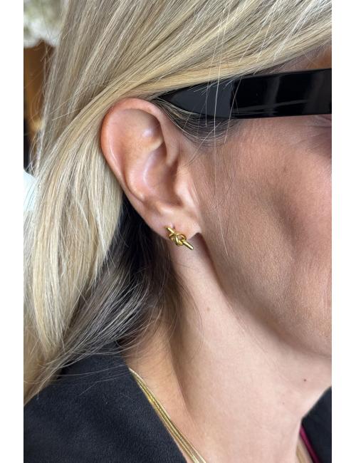 Pendientes pequeños con diseño de nudo dorado. De estructura fina metalizada.