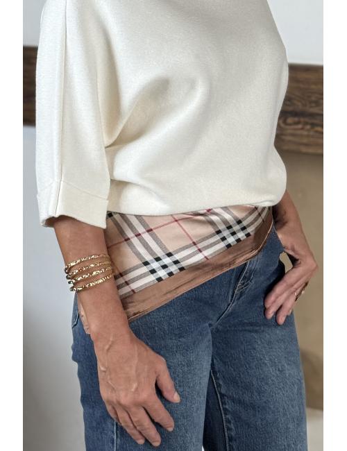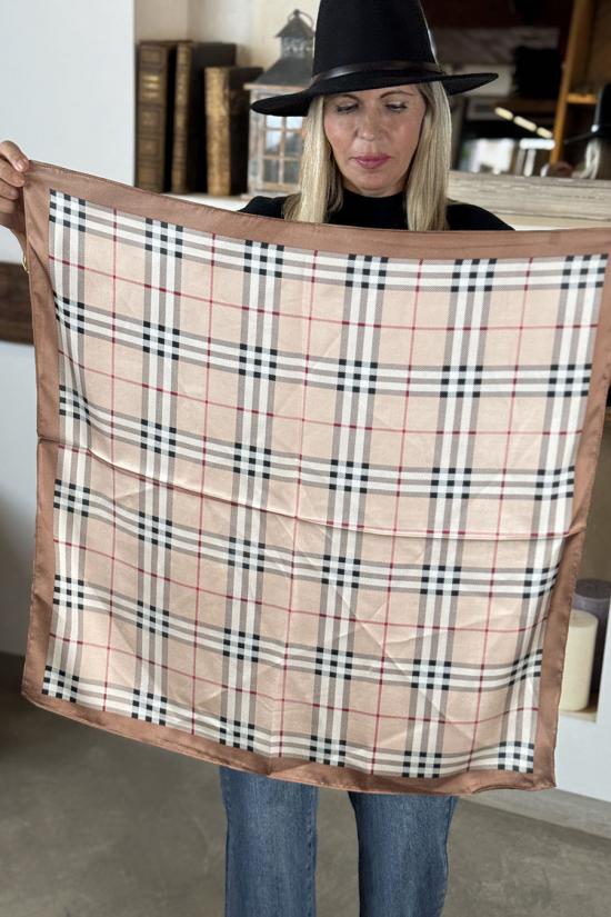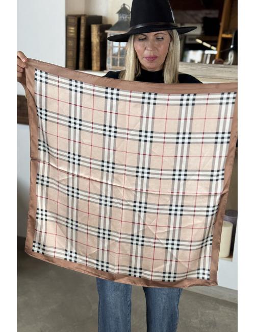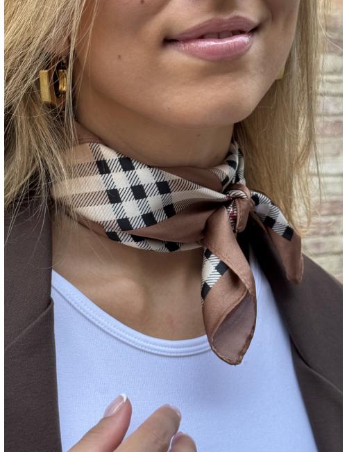 Pañuelo estampado cuadro gales. Tejido fluído de raso satinado. Ideal para llevarlo al cuello o como cinturón.