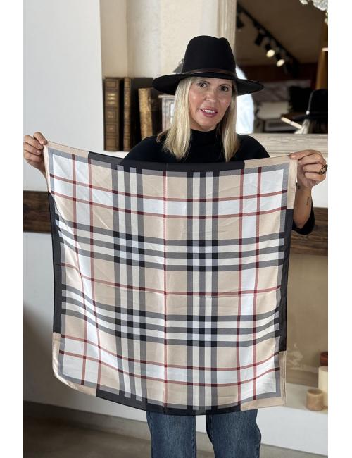 Pañuelo estampado cuadro gales. Tejido fluído de raso satinado. Ideal para llevarlo al cuello o como cinturón.