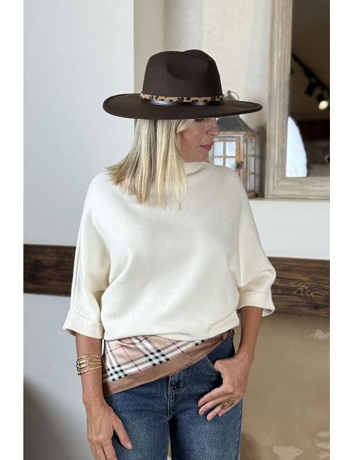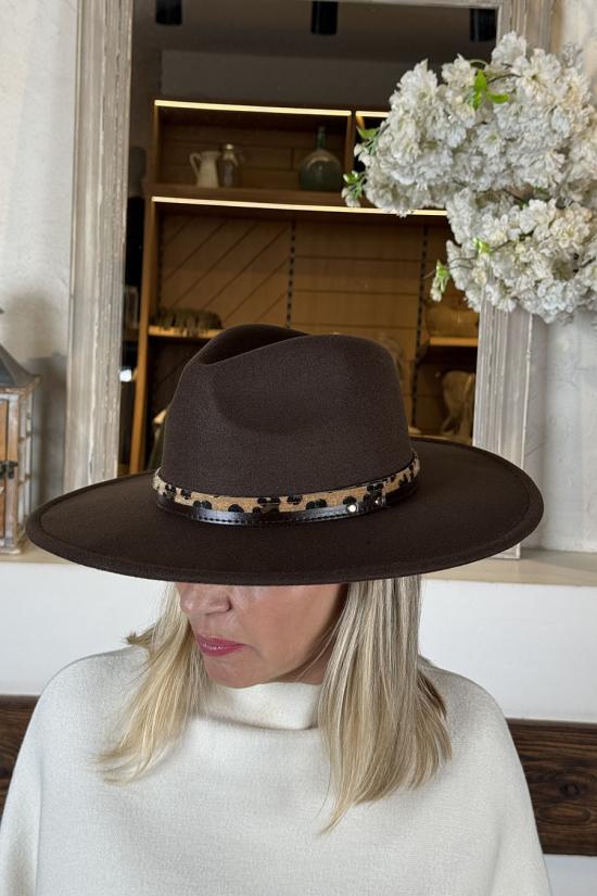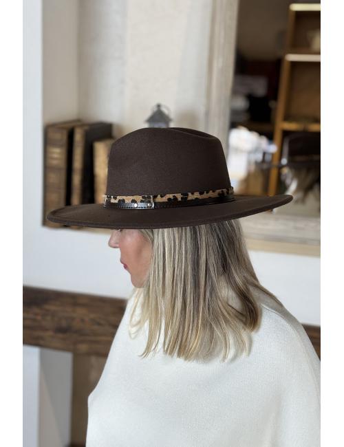 Sombrero estilo Fedora, de ala suave y copa dentada con pliegue longitudinal. Confeccionado en fieltro. Detalle de cinta téxtil animal print combinada con polipiel. Añade a tu outfit un toque traveller, distinguido y desenfadado con este sombrero de acabado y confección impecable.