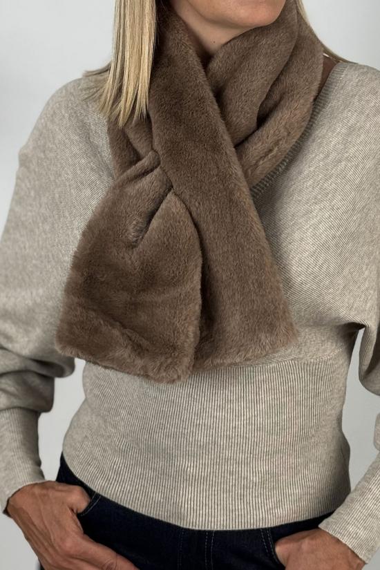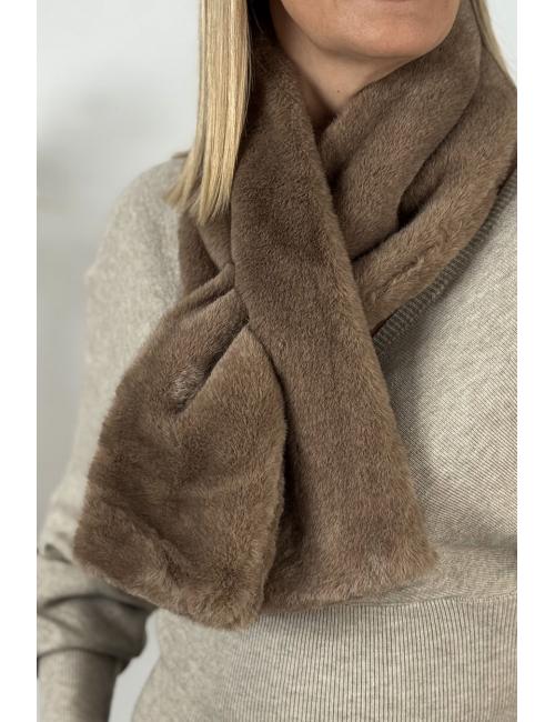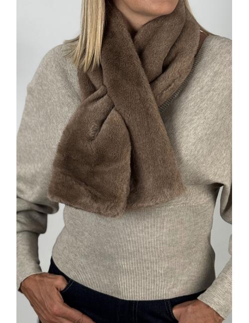 Cuello bufanda confeccionado en pelo sintético muy suave. Dispone de una abertura para cerrar. El complemento tendencia de este invierno que eleva tus outfits y aporta un toque atrevido y estiloso.