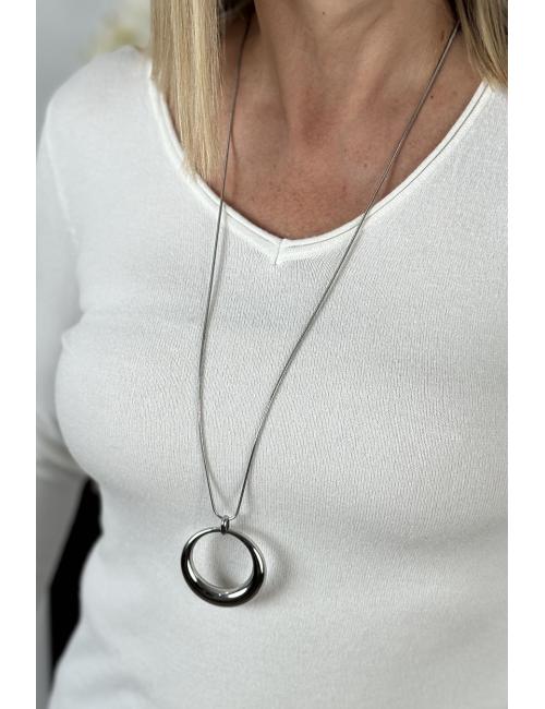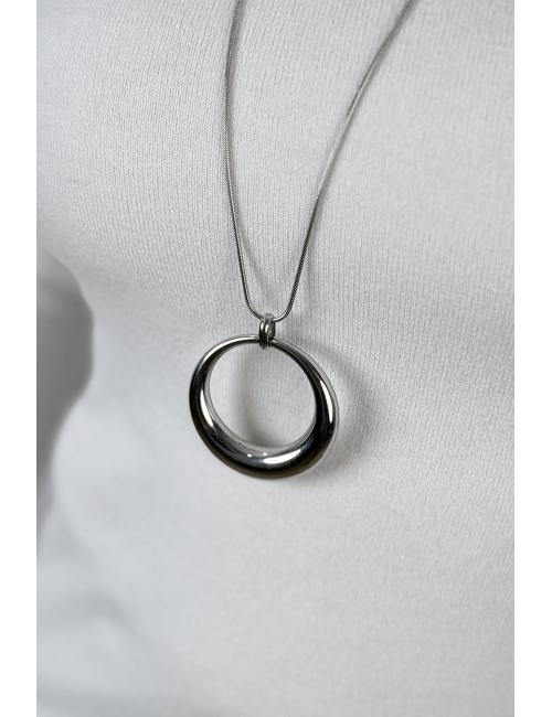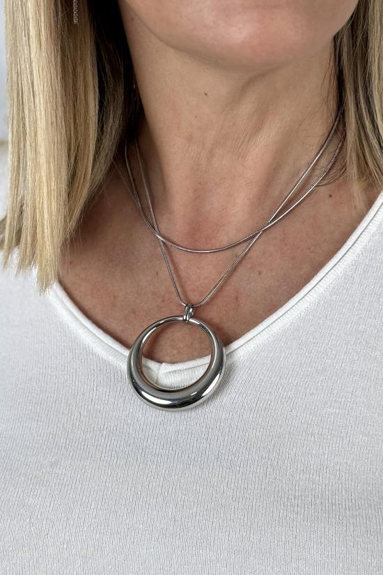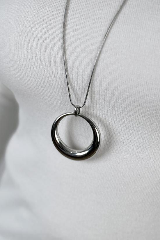 Collar largo de acero plateado. Cadena fina metálica con aro grande. Puedes llevarlo de dos formas, con el largo tal cual o con doble vuelta. Dale un toque de distinción a tus outfits urbanos o de fin de semana con este collar sofisticado y de estilo atemporal.