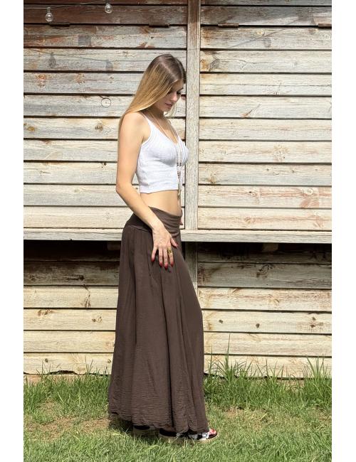 Crop top elástico con tirantes, confeccionado en punto lurex brillante. Escote delante en V y recto en la espalda.