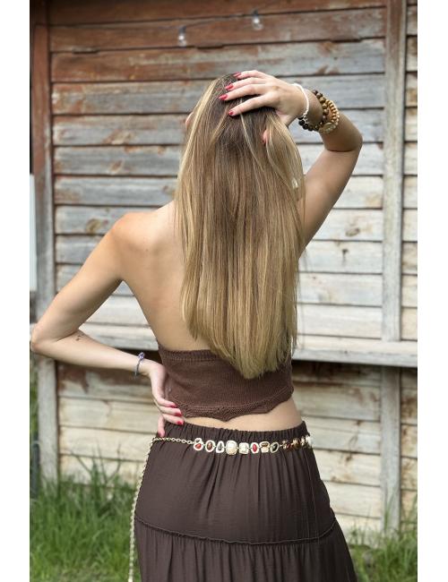 Crop top ganchillo marrón