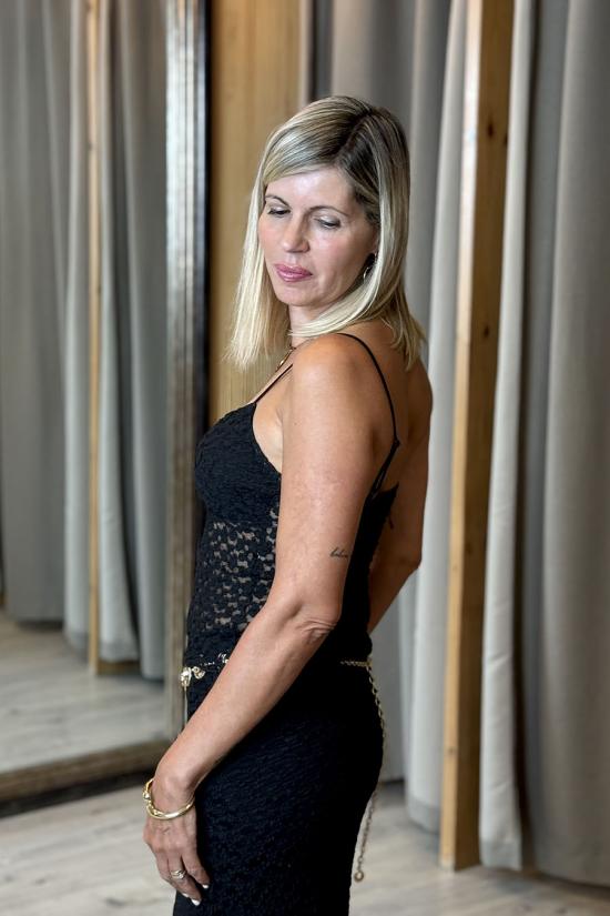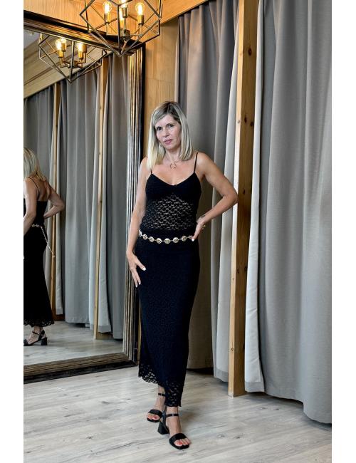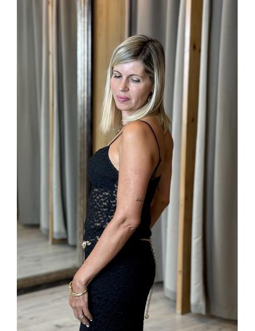 Top elástico confeccionado en tul bordado. Tirantes regulables en altura para un mejor ajuste. Cazoletas en el pecho y detalle de fruncido delante. Escote barca y espalda descubierta.