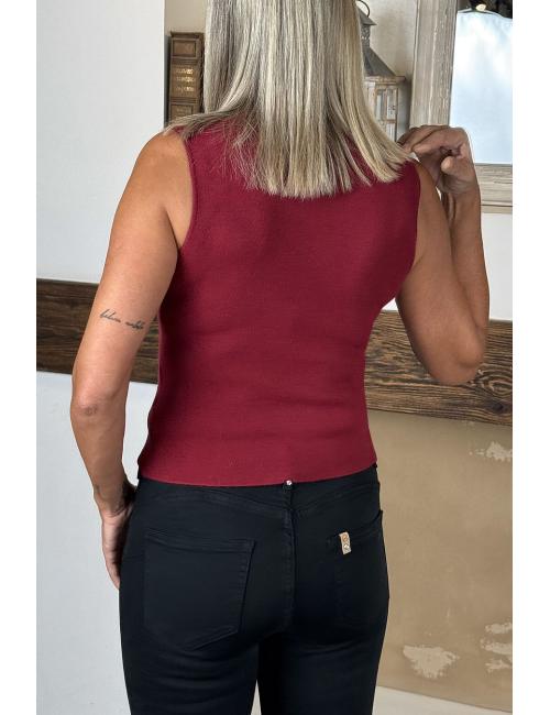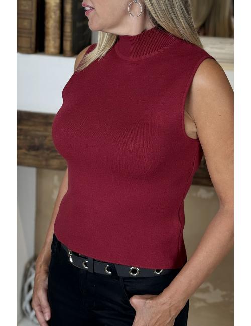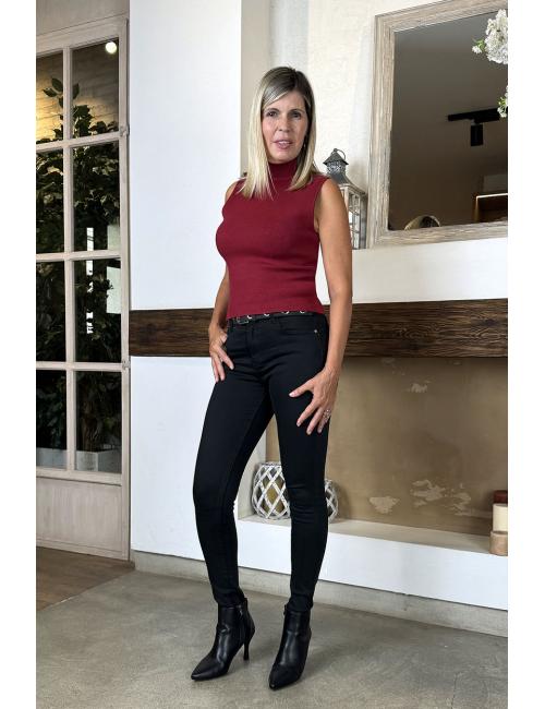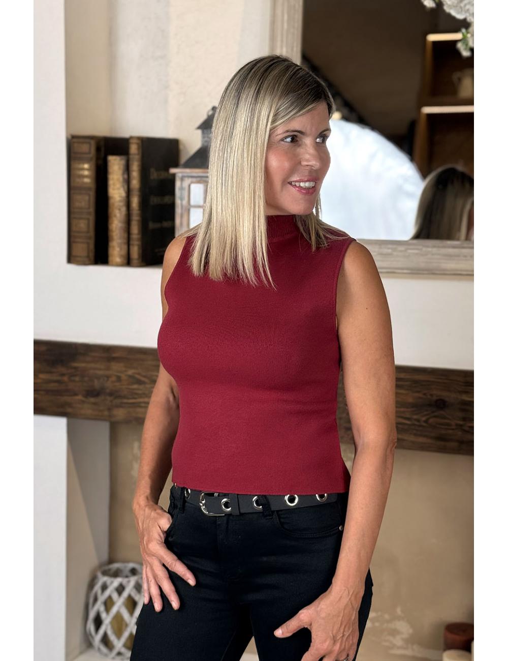 Jersey sin mangas, entallado y confeccionado en punto elástico. Tiene el cuello perkins. Un básico impresindible, cómodo versátil y combinable con tus faldas y pantalones.