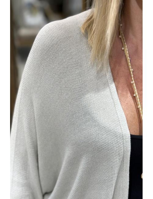 Chaqueta de punto fino sin botones y mangas tres cuartos. Una chaqueta ideal para esas tardes-noches fresquitas en las noches de verano.