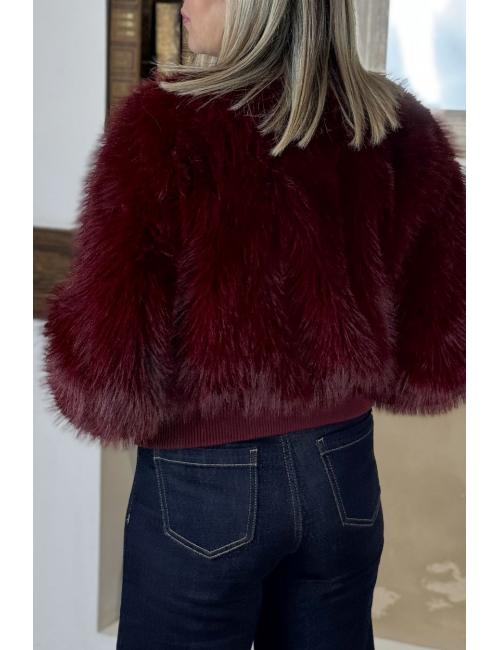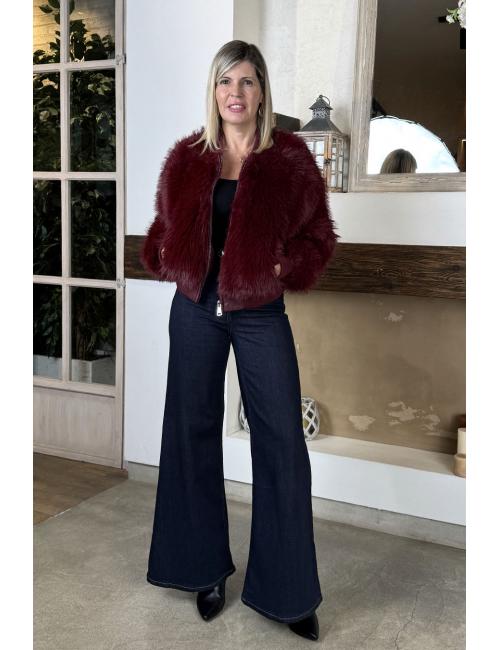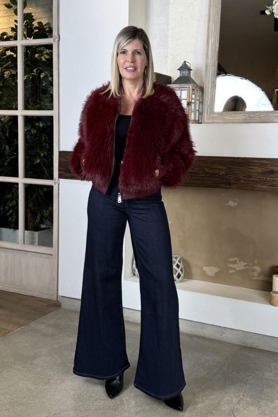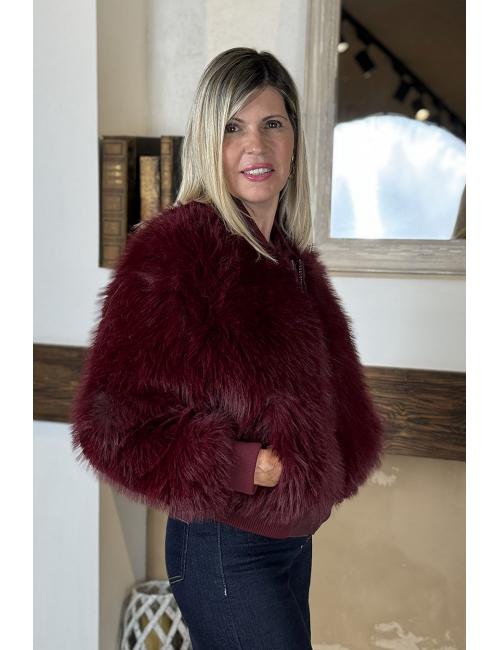 Cazadora bomber confeccionada con textil efecto pelo súper suave. Cuello redondo y puños acabados en punto canalé. Cierre delante con cremallera. Dos bolsillos laterales y forro de raso satinado interior.
