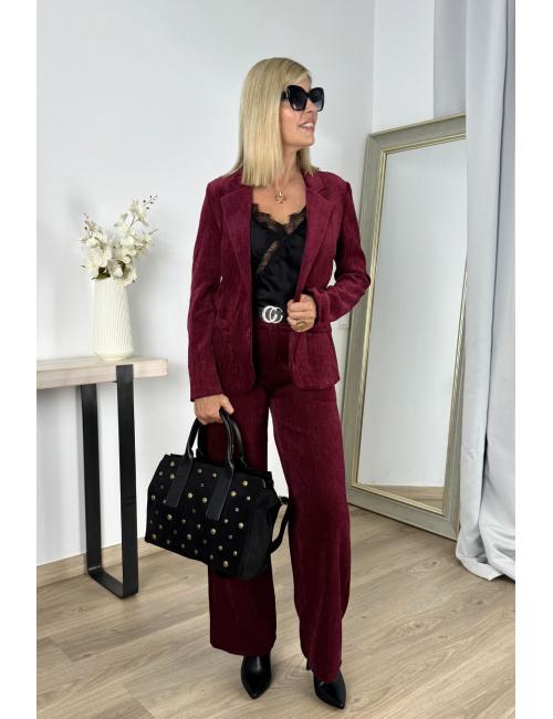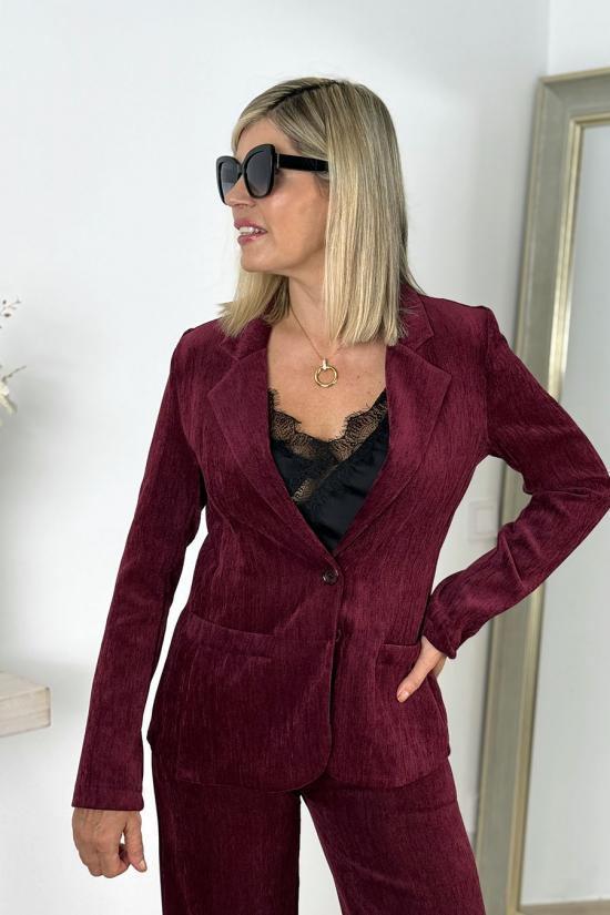 Americana confeccionada en tejido aterciopelado. Corte entallado, solapa sastre, forro interior y cierre frontal con dos botones anacarados. Incluye dos bolsillos frontales decorativos con tapetas. Una blazer diferente y estilosa, ideal para tus looks de diario y de fin de semana.