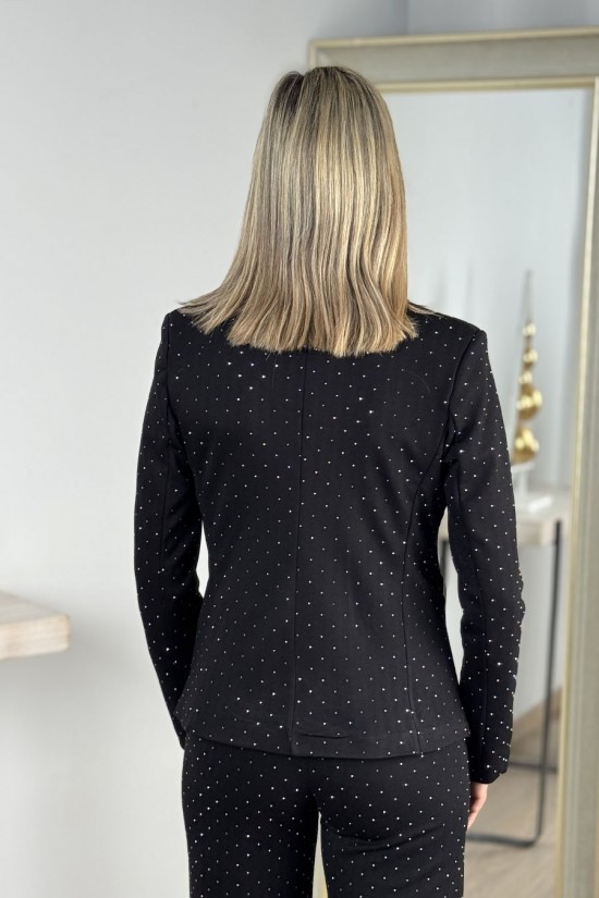 Americana confeccionada en tejido texturado en espiga con brillantitos. Corte entallado, solapa sastre y cierre frontal con un botón. Incluye dos bolsillos decorativos. Una blazer elegante y estilosa, ideal para ocasiones especiales y celebraciones.