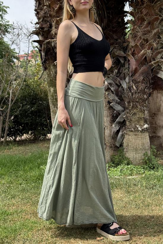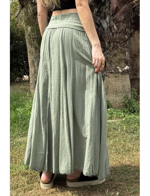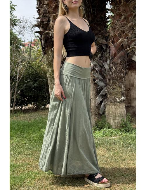 Falda larga ibicenca. Incluye un fajín ancho y elástico en la cintura que hace que se adapte a varias tallas.