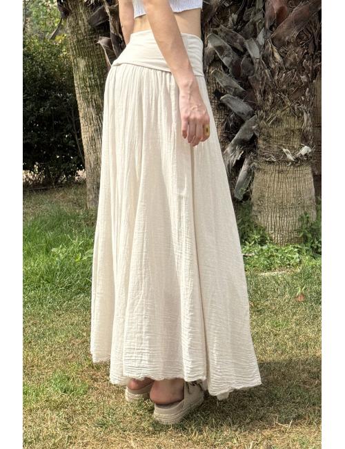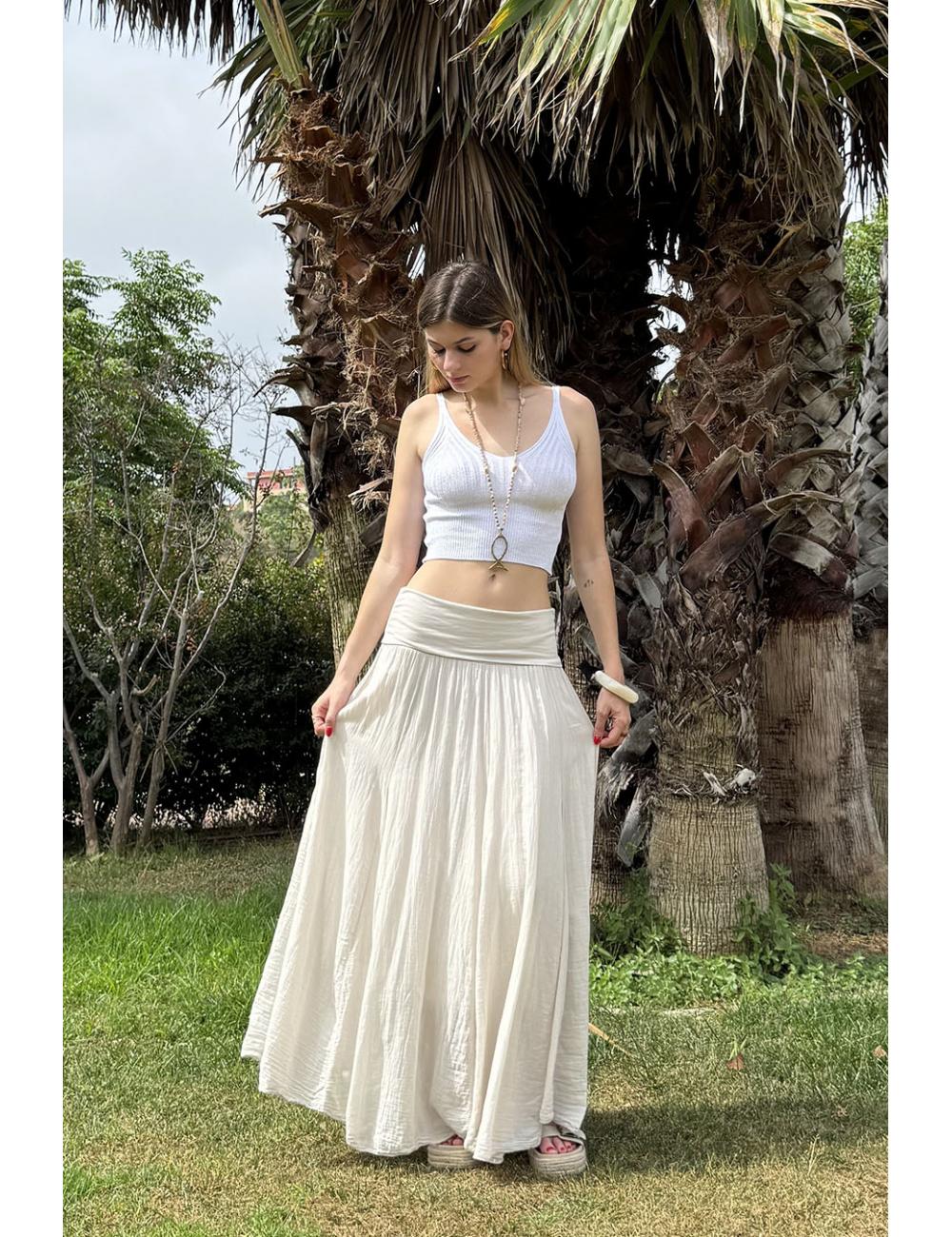 Falda larga ibicenca. Incluye un fajín ancho y elástico en la cintura que hace que se adapte a varias tallas.