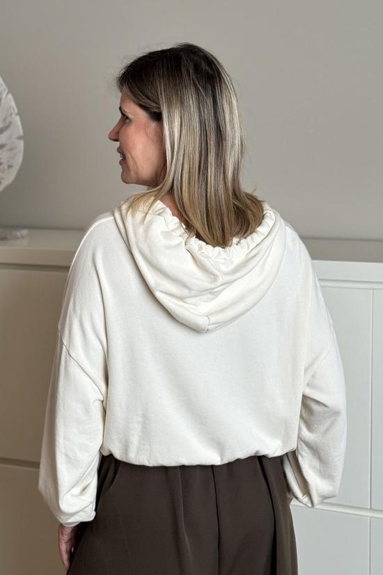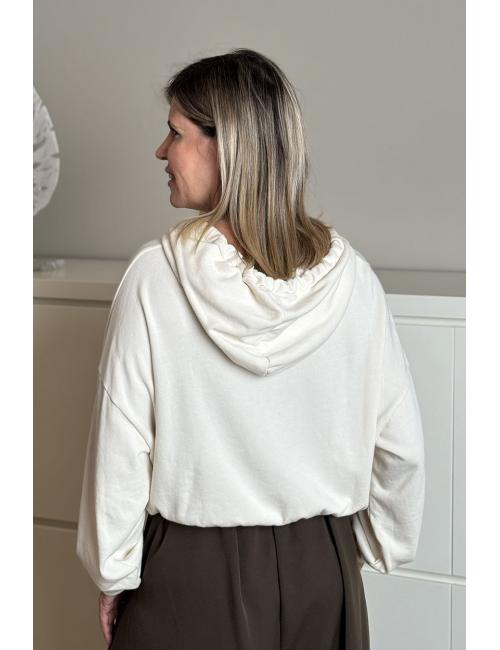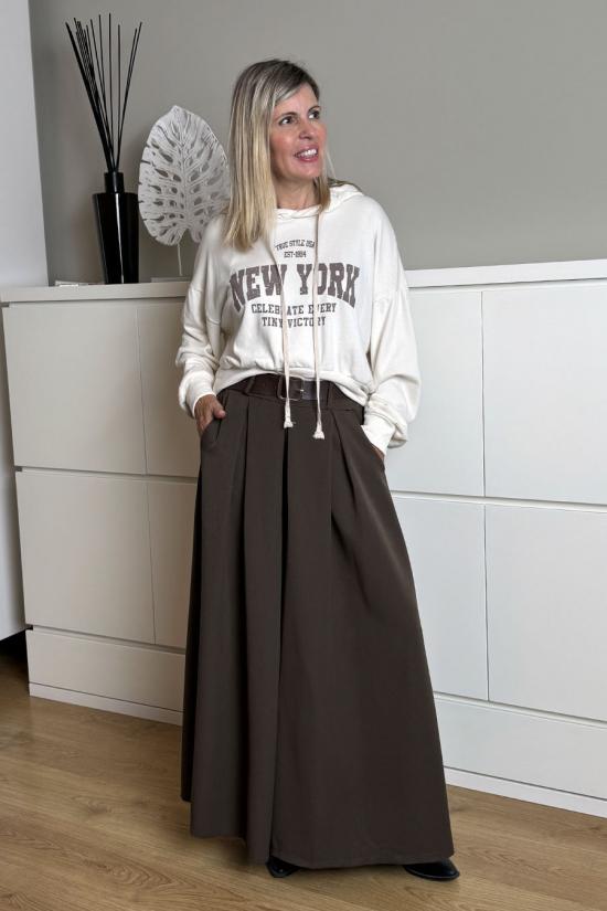 Sudadera corta con print delante "New York" que añade un toque informal a la prenda. Capucha con cordones. Perfecta para tus looks más relajados, casual e informales.