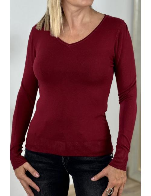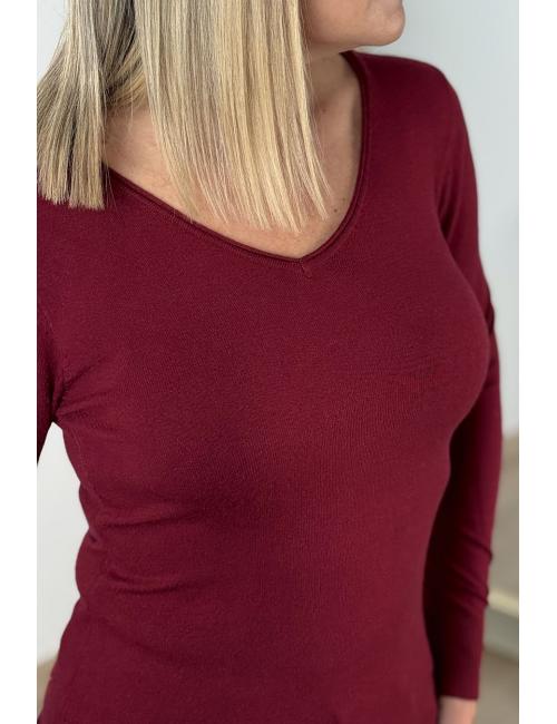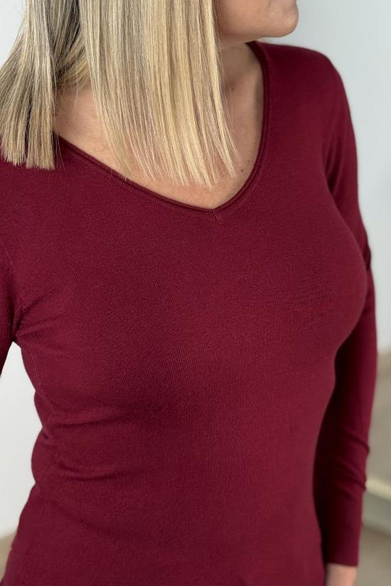 Jersey básico de manga larga confeccionado en punto fino elástico y tupido con cuello de pico. El jersey más versátil de nuestra colección que podrás incluir en tus outfits con faldas, tejanos, palazzos, etc.