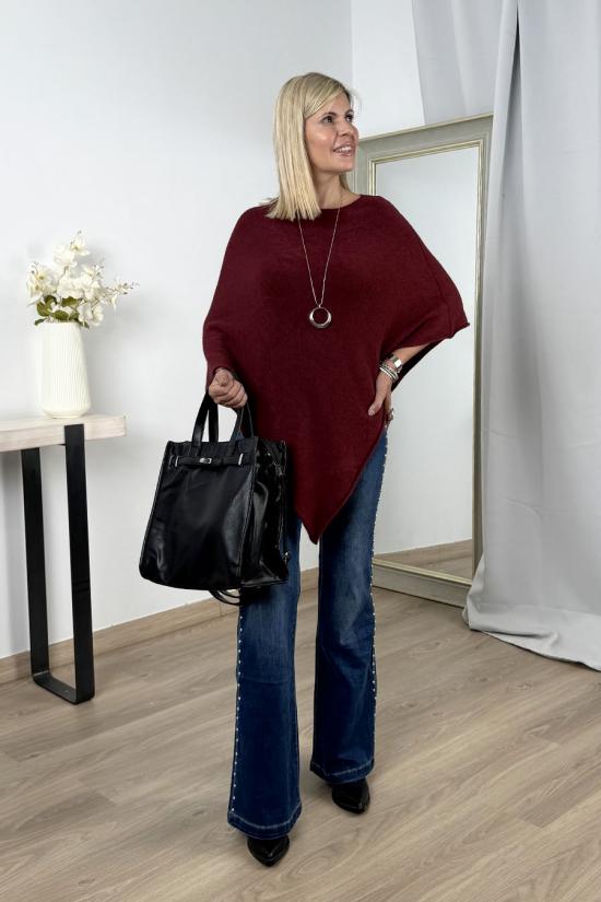 Poncho jersey sin mangas confeccionado en punto. Cambia tu jersey tradicional por este poncho de punto y añade un toque original y divertido a tu look.