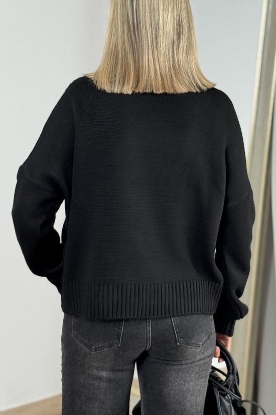 Jersey de punto oversize con detalle de tachitas plateadas en escote y media manga. Confeccionado en un tejido de punto elástico que destaca por su suavidad, resistencia, elasticidad y facilidad de cuidado. Un jersey suave y calentito, ideal para darle un toque divertido y sofisticado a tus looks con pantalones y faldas, tanto de diario como de fin de semana.