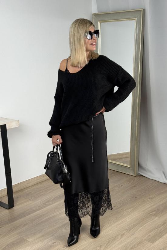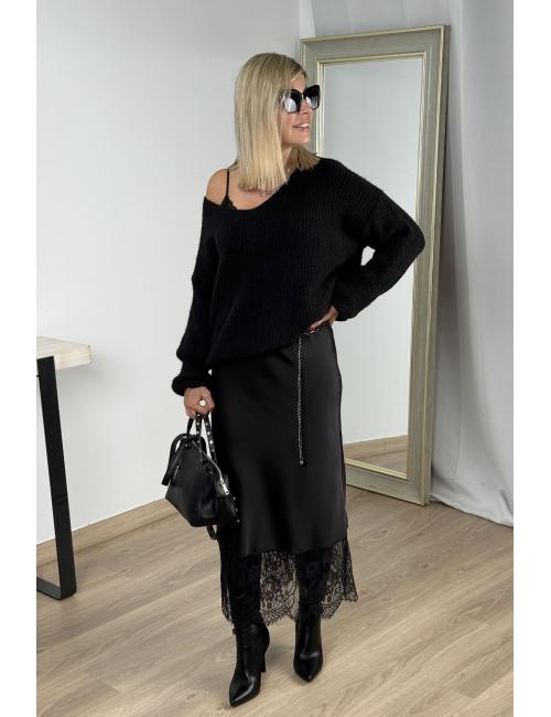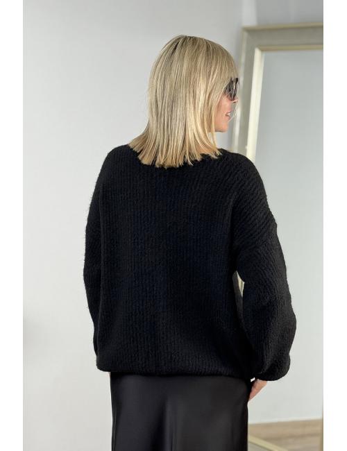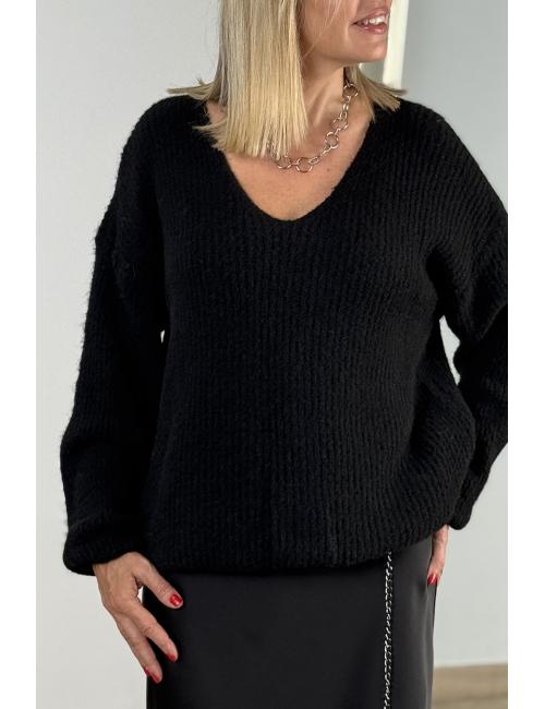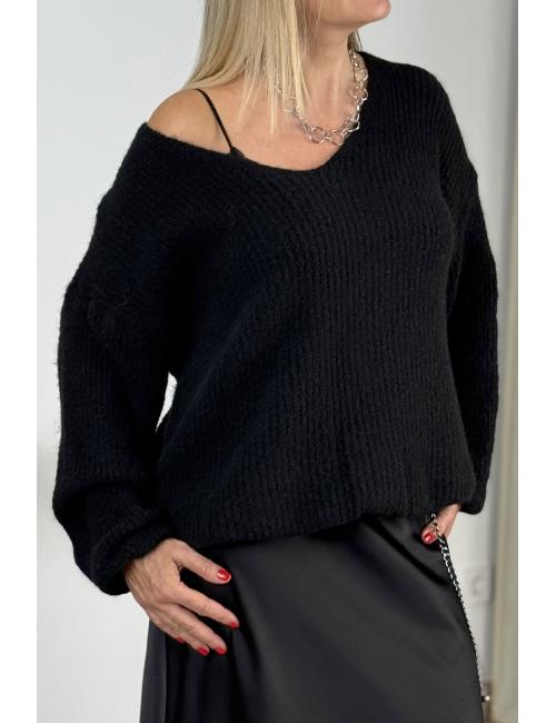 Jersey oversize de lana fina, cuello en V. Es de tacto súpersuave y puedes llevarlo con hombro descubierto o de. manera convencional. Un must imprescindible para tus looks de invierno.