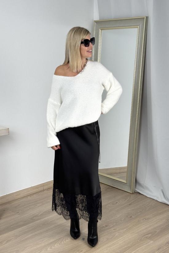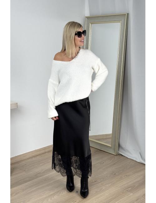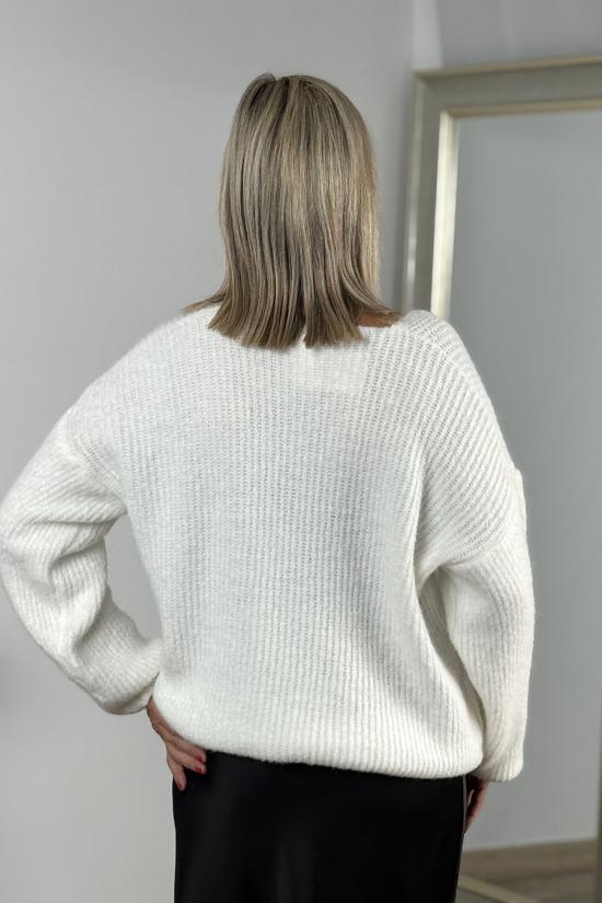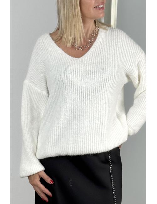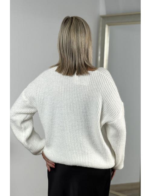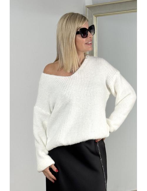 Jersey oversize de lana fina, cuello en V. Es de tacto súpersuave y puedes llevarlo con hombro descubierto o de. manera convencional. Un must imprescindible para tus looks de invierno.