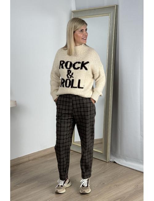 Jersey punto grueso extra suave. Cuello perkins estilo chimenea. Detalle de print delante "Rock and Roll" a contraste. De corte oversize, es amplio y confortable, ideal para looks comfy y sport chic.