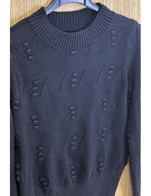 Jersey de punto tupido elástico con texturas en relieve. Corte entallado y cuello perkins. Detalle de canalé en puños, cintura y cuello.