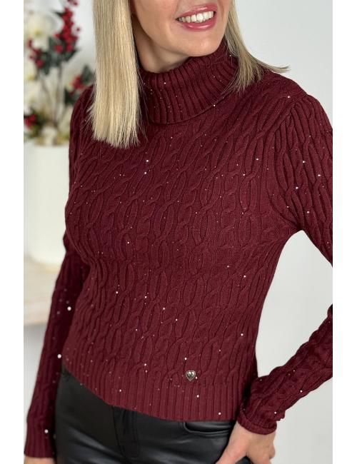 Jersey de manga larga, cuello alto y lentejuelas mini repartidas por toda la prenda. Confeccionado en punto trenzado de grosor medio. Un jersey que combina a la perfección, comodidad con estilo.