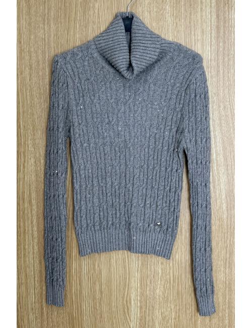 Jersey de manga larga, cuello alto y lentejuelas mini repartidas por toda la prenda. Confeccionado en punto trenzado de grosor medio. Un jersey que combina a la perfección, comodidad con estilo.