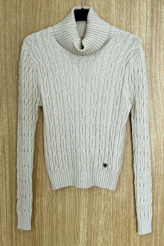 Jersey de manga larga, cuello alto y lentejuelas mini repartidas por toda la prenda. Confeccionado en punto trenzado de grosor medio. Un jersey que combina a la perfección, comodidad con estilo.