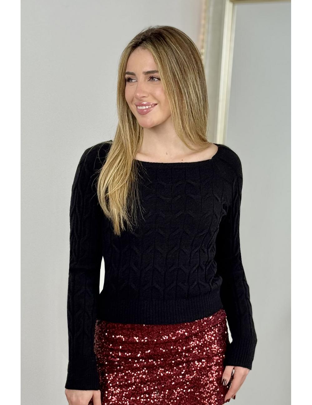 Fine wool sweater with a cable knit and stretch. Boat neck, ribbed waist and cuffs. A timeless wardrobe staple made from extra-soft wool.