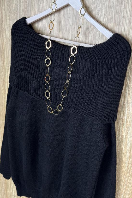 Jersey de lana suave oversize que puede llevarse como jersey y como vestido. Detalle de acabado canalé en puños y cuello. Cuello con vuelta estilo bardot.