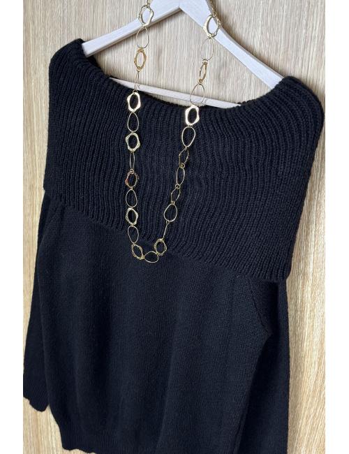 Jersey de lana suave oversize que puede llevarse como jersey y como vestido. Detalle de acabado canalé en puños y cuello. Cuello con vuelta estilo bardot.