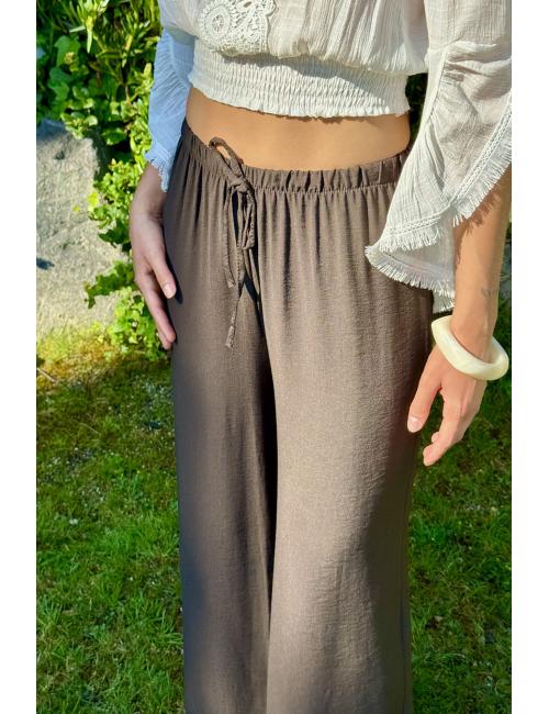 Pantalón palazzo fluído de algodón fino. Cintura elástica adaptable a varias tallas.