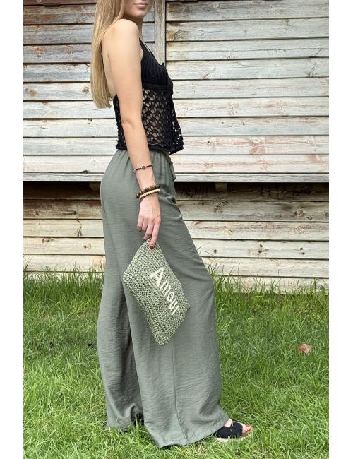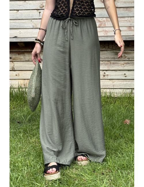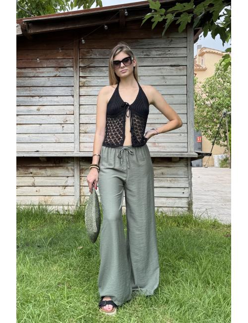Pantalón palazzo fluído de algodón fino. Cintura elástica adaptable a varias tallas.