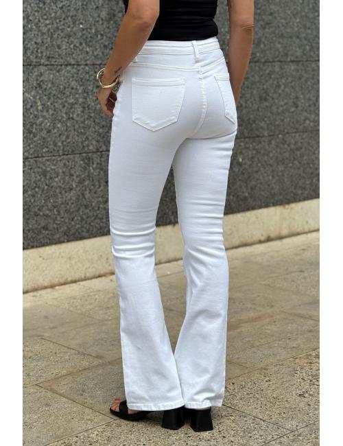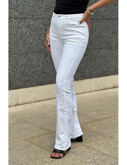 Pantalón campana de tiro alto confeccionado en algodón elástico. Cinco bolsillos y cierre con botón y cremallera. Un "must have" cómodo, versátil y estiloso, ideal para tus looks de diario o de fin de semana.