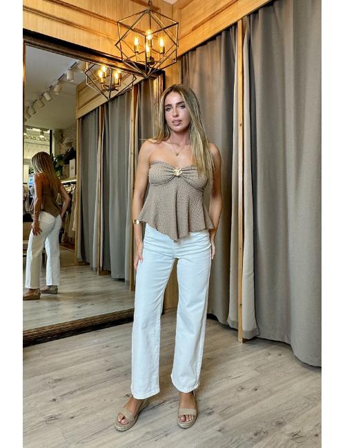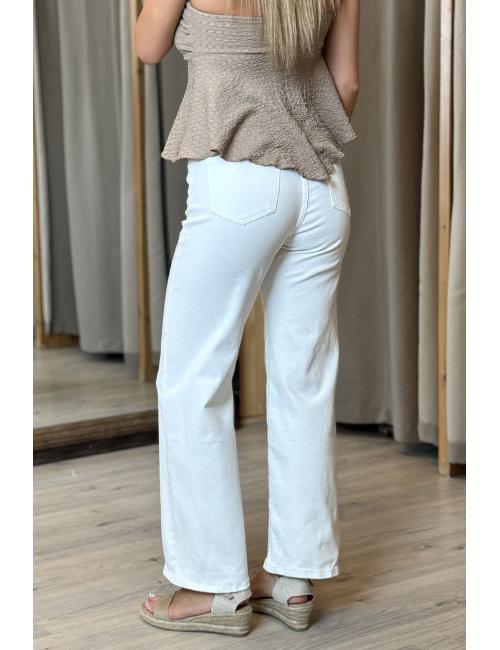 Pantalón recto básico de tiro alto confeccionado en algodón elástico. Cinco bolsillos y cierre con botón y cremallera. Un imprescindible atemporal y cómodo que podrás lucir varias temporadas.