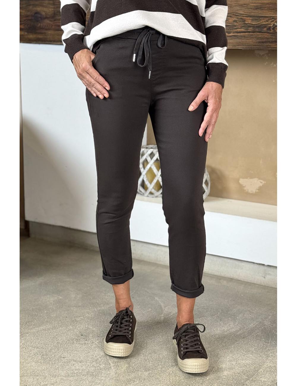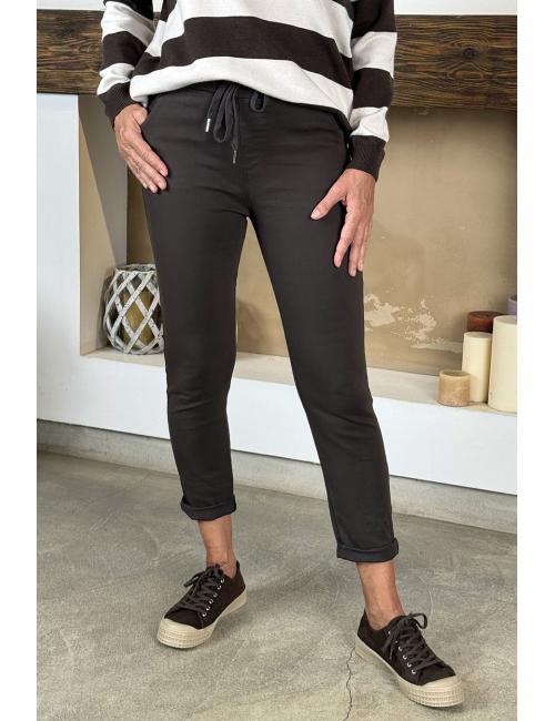 Pantalón jogger de tiro medio. Cintura elástica y cordón para un mejor y más cómodo ajuste. Dos bolsillos laterales.