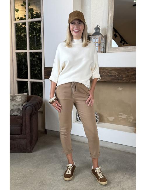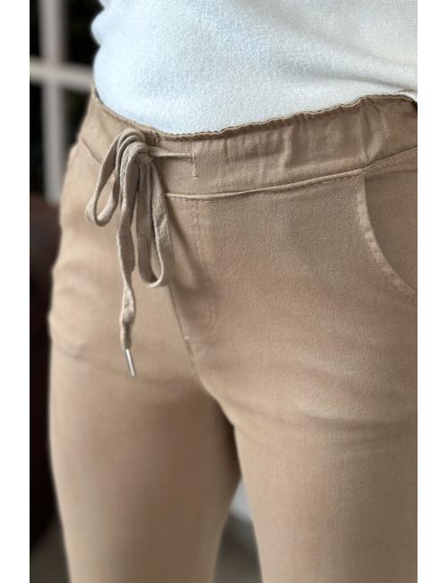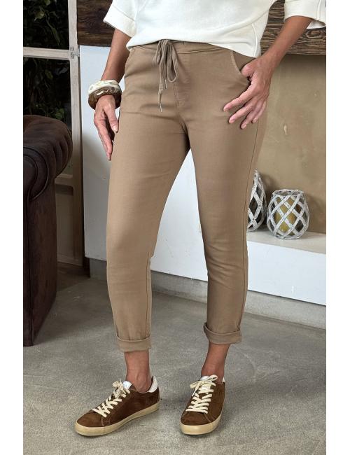 Pantalón jogger de tiro medio. Cintura elástica y cordón para un mejor y más cómodo ajuste. Dos bolsillos laterales.