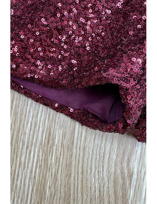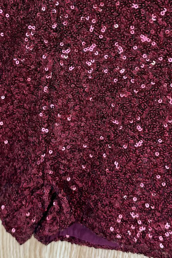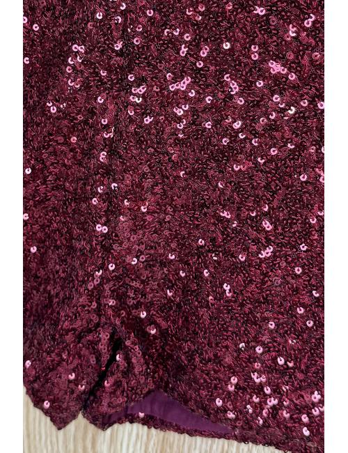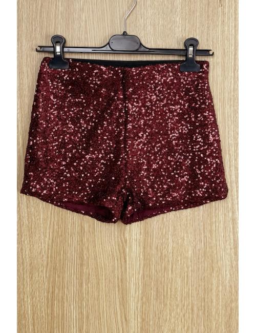 Short mini de lentejuelas con goma en la cintura, adaptable a varias tallas. Forro interior de punto fino.