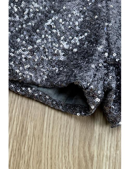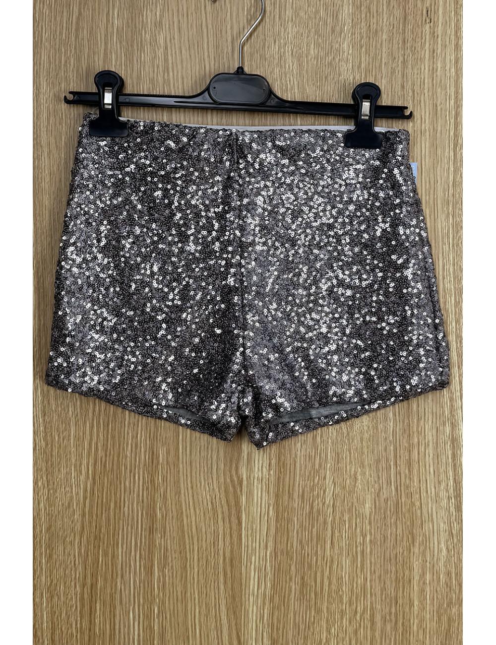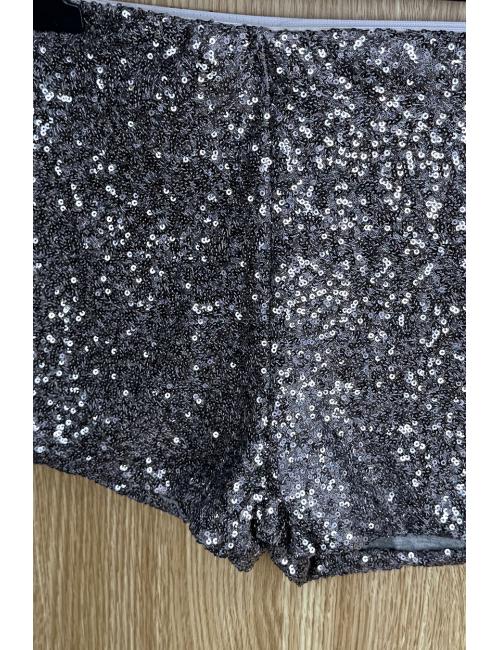 Short mini de lentejuelas con goma en la cintura, adaptable a varias tallas. Forro interior de punto fino.