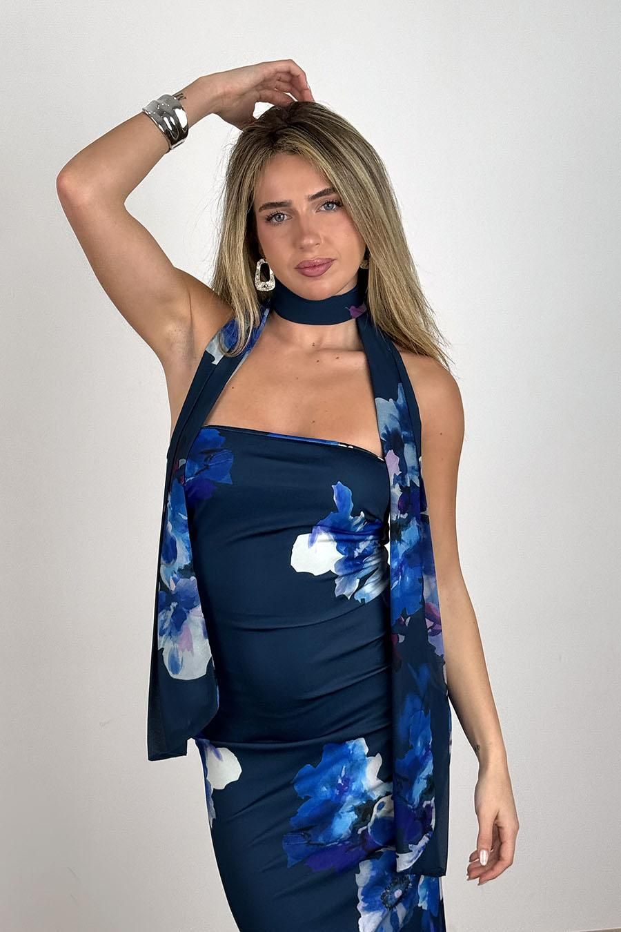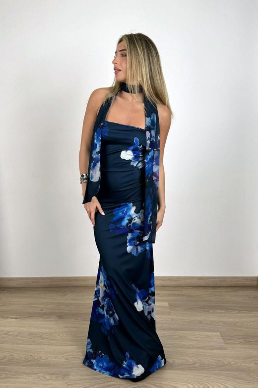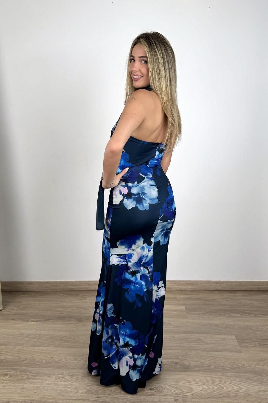 Vestido largo flores Triana azul marino